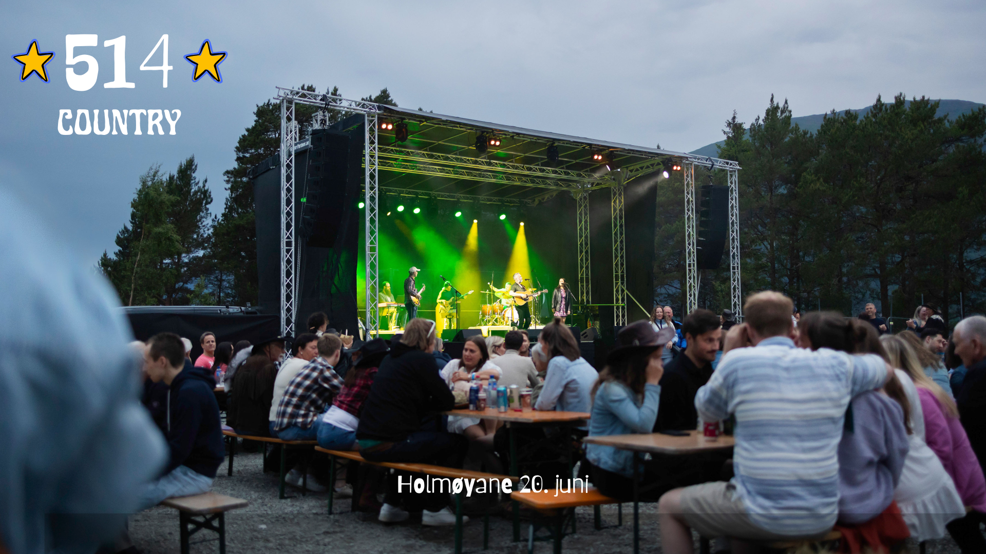 514 Country Festival blir arrangert i Holmøyane, omgitt av vakker natur som gir den perfekte ramma for ein ekte country festival. Lokasjonen gjev både god plass til aktivitetar og ei unik atmosfære du ikkje finn andre stader.